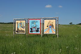 De første uger i april flytter INARA ind hos Dorte og maler tre store værker ude i det fri på marken ved galleriet. Processen bliver fulgt af tilskuere og malerierne af Odin, Freja og Skjold bliver et flot vartegn sommeren over.