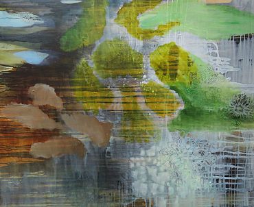 Maleprocesserne er eksperimenterende, hvor materialer af forskellig karakter får lov til at danne uventede sammenstød – ved en sammensætning af malede flader og små strejf af broderi skabes nye imaginære rum.