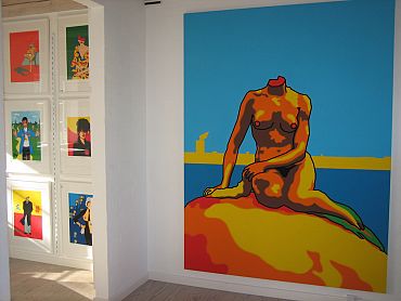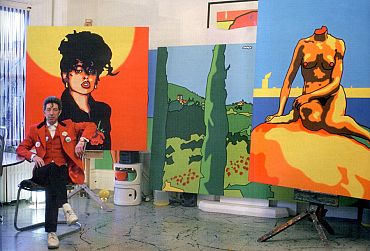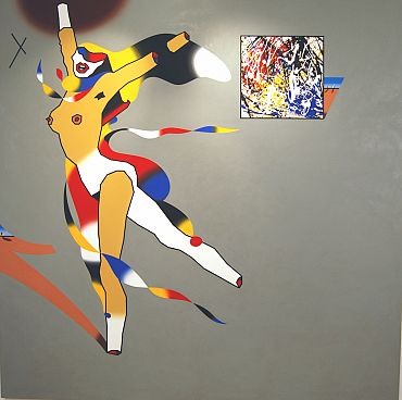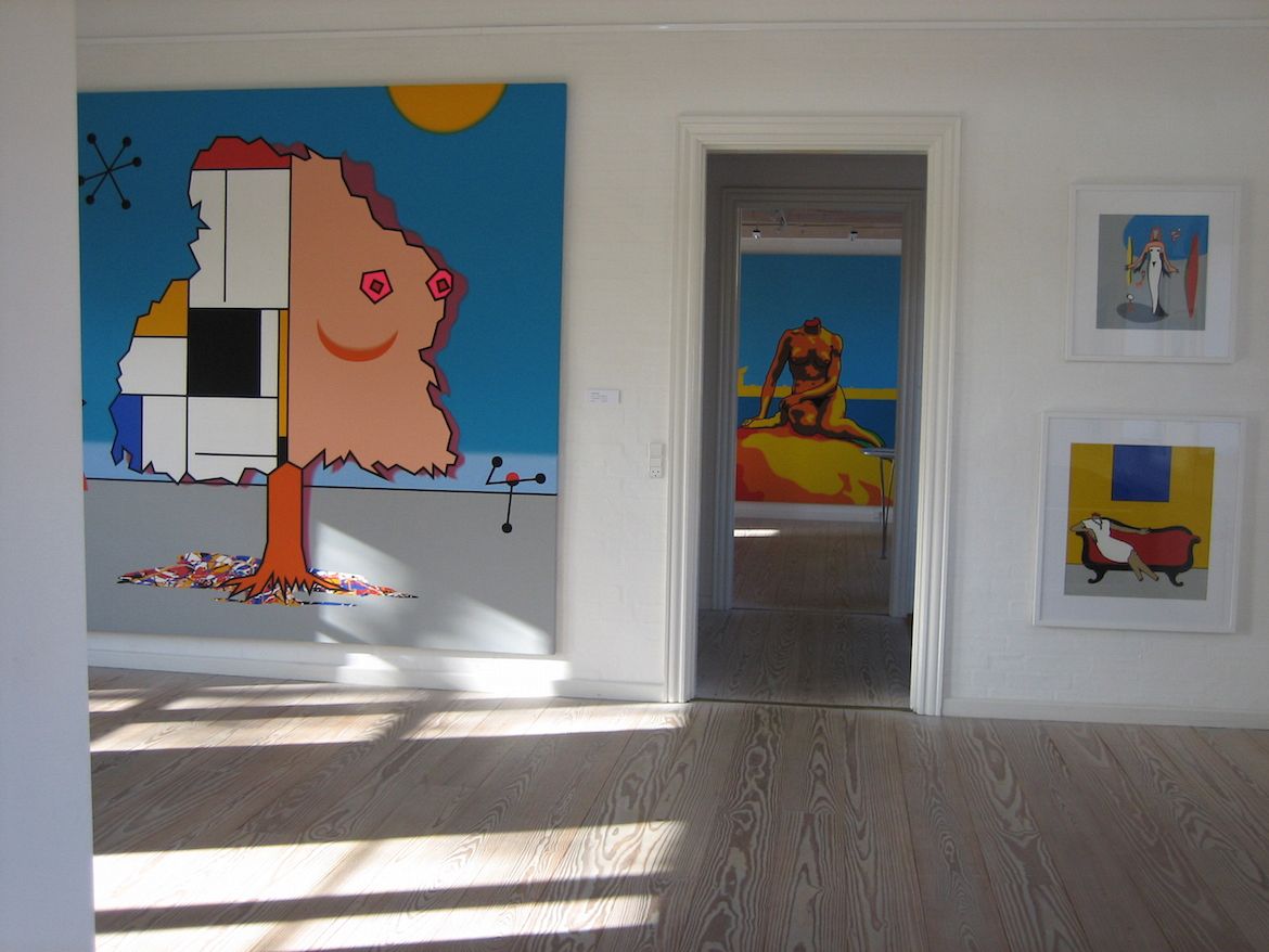 Duggie Fields (1945) er engelsk pop-art kunstner og et Duggie Fields maleri er altid let genkendeligt; En stærkt forenklet figuration tilsat psykedeliske farver og malet med direkte afsæt i computergrafik er et sikkert kendetegn.