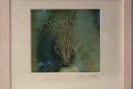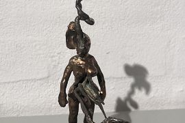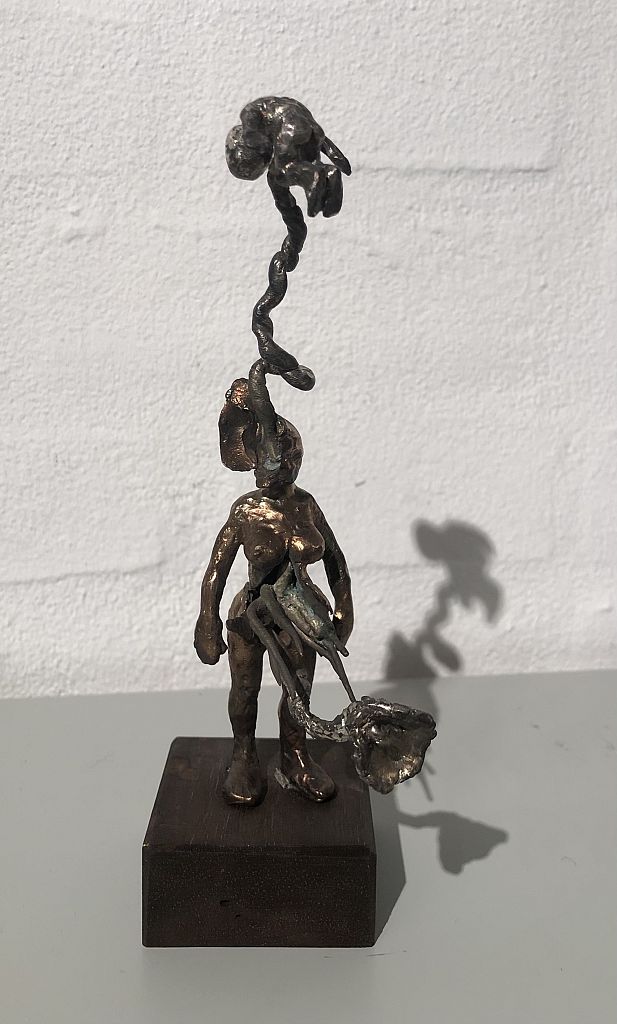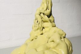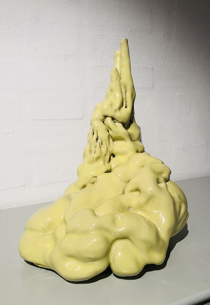 "Primordial soup #17" af Lene Winther, 31 x 25 x 31 cm., gul glasur og stentøj